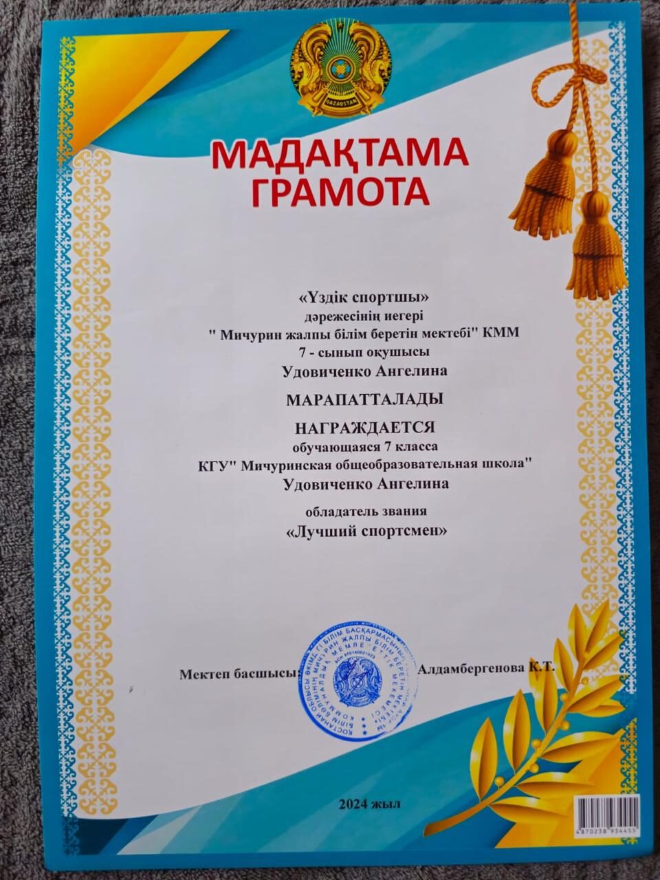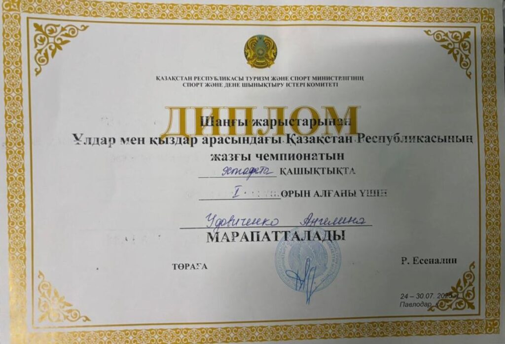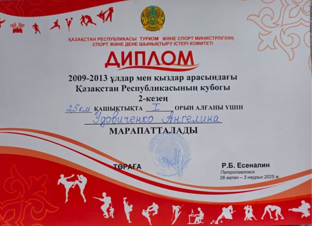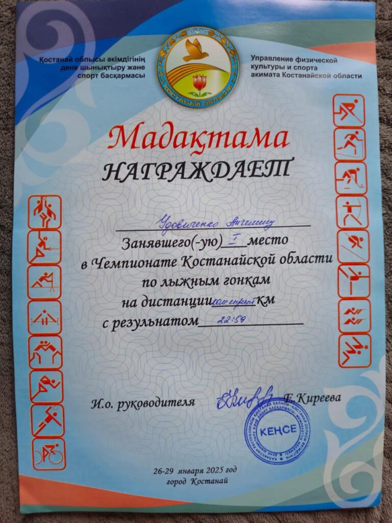 Удовиченко Ангелина-9 «А» сынып оқушысы, 2011 жылы 14 ақпанда дүниеге келген. Сегіз жасынан бастап ол шаңғы жарыстарымен айналысады және бірнеше жыл бойы өзінің спорттық дағдыларын белсенді түрде дамытады. Ангелина Қостанай қаласының №3 БЖСМ орталық — олимпиадалық резервті даярлау орталығында жаттығады, онда елеулі спорттық дайындықтан өтеді және республикалық жарыстарда жоғары нәтижелер көрсетеді.
